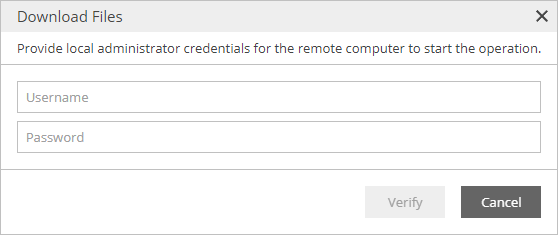 Selecting this will open a window asking for credentials for the remote computer. For a Windows OS this should be a local administrator account and for Linux/Mac, an account with sudo rights.