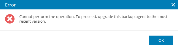 VSPC will throw an error if any of the components don’t meet the requirements. For example, attempting a restore using an outdated agent will display the below message.