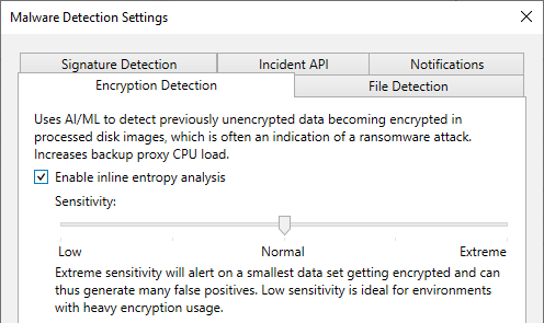 Signature Detection – Select between Veeam Threat Hunter and BYO AV detection engines. It’s worth noting here that Veeam Threat Hunter is only selected by default on new VBR installations. If you upgrade to 12.3 from an older version, BYO AV will still be selected.
