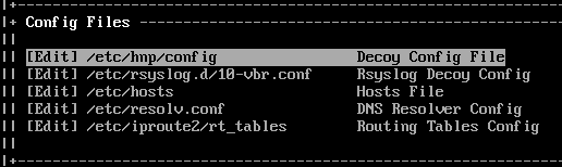 Let’s take a look at the Decoy Config File by selecting Edit under the Config Files section – this will open the file in nano editor. The config file is where each of the decoy services can be configured with the ability to change how they behave.
