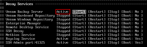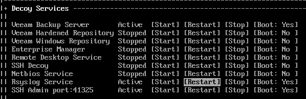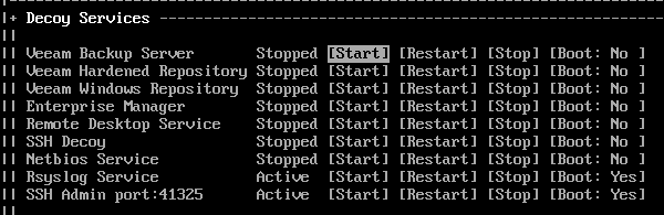 | Decoy Services | Configure which decoy services to running with the ability to control their state and startup preference. |