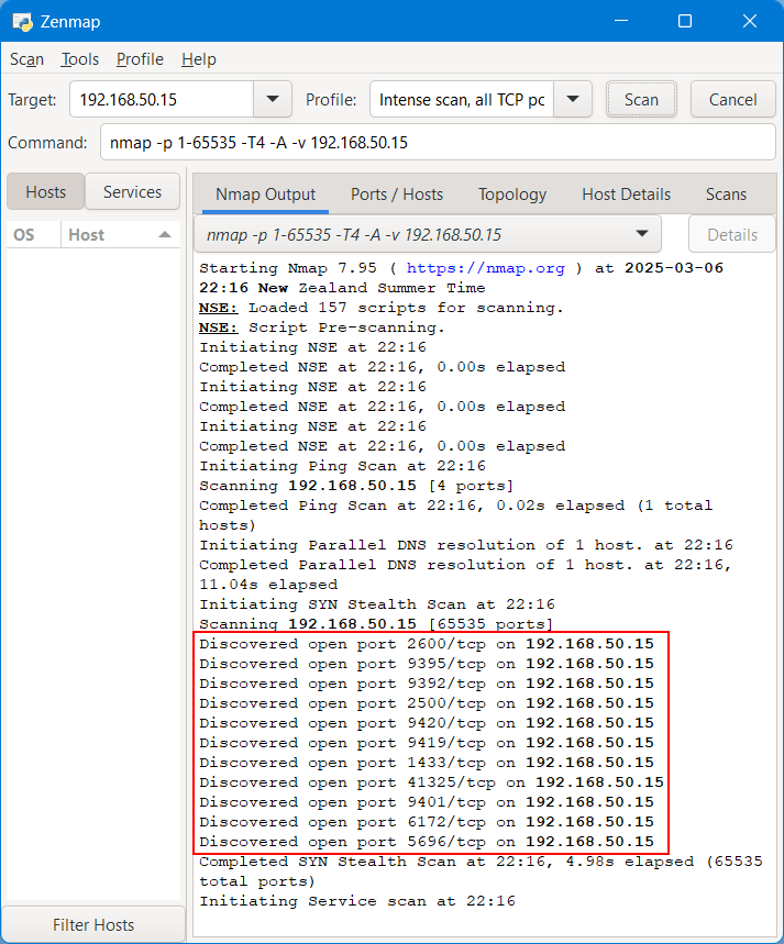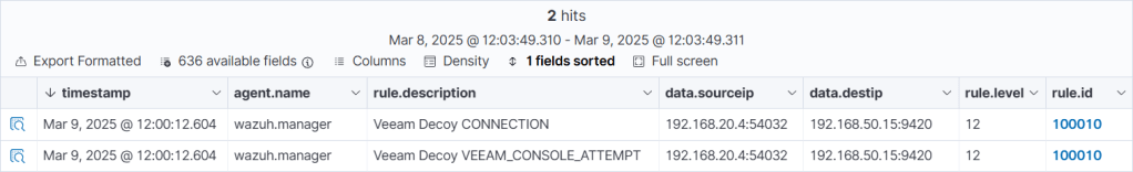 Sure enough, the same list of ports have been discovered. The VBR service on the decoy server intercepts these connections and displays them in the UI as SYN_SCAN events.