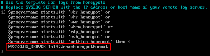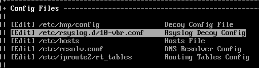 The alternative option forwards logs to a SysLog server. If you have a syslog server already available, it only takes a few moments to set this up. First edit the Rsyslog Decoy Config in the Config Files section.