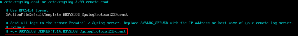 Replace SYSLOG_SERVER with the IP/name of your syslog server.