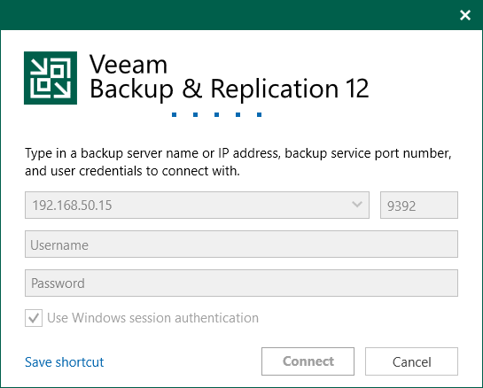 Right, back to our bad actor scenario – after performing the port scan the attacker notices the open ports relate to Veeam Backup & Replication and decides to try and connect to the server using the console.