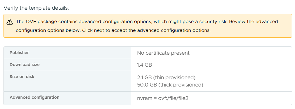 First download the OVA file (1.4 GB) and start the vSphere deployment wizard.