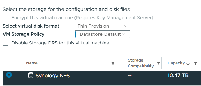Select which datastore to deploy the VM onto.