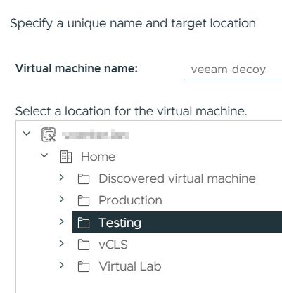 Give the VM an appropriate name, select where it should be located and a compute resource.