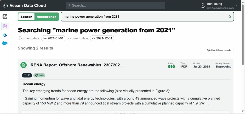 The demo certainly was eye opening, showing what can be achieved when using these emerging technologies. In this instance, it makes tasks such as searching for specific information within backup repositories seem almost effortless. It was impressive to see how quickly a natural language search query was able to return results in ways we haven’t seen before with Veeam.