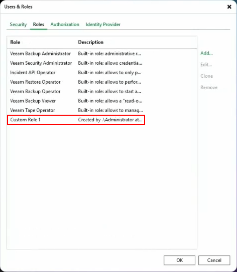 Additional capabilities have been added to RBAC allowing the creation of custom roles within VBR. The ability to define new roles with granular permissions outside of the built-in presets is a welcome addition.