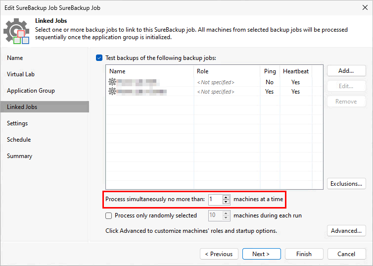 - Only supports SureBackup jobs configured to process 1 VM at a time