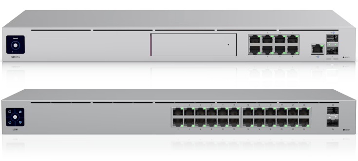 | Networking | Standard all-in-one ISP router/switch/Wi-Fi | Ubiquiti – UniFi Dream Machine Pro – UniFi USW-24-POE (1GbE) – UniFi U6-Mesh Access Point (Wi-Fi 6) |