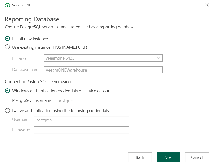 I wanted to highlight the Reporting Database step of the wizard in particular, which will be running on PostgreSQL in V13: