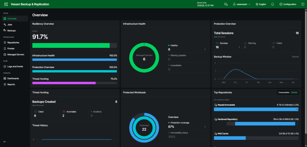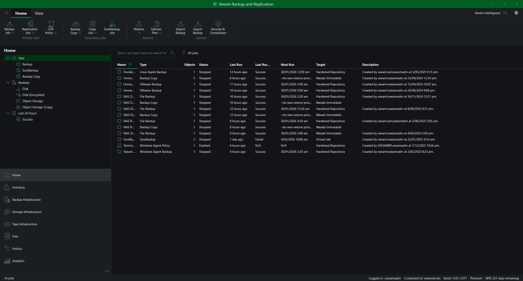 This marks the half way point in this 2 part series, with the VBR now running V13 on Windows. Stay tuned for part 2 where we will perform the migration from Windows to the VSA on Linux.