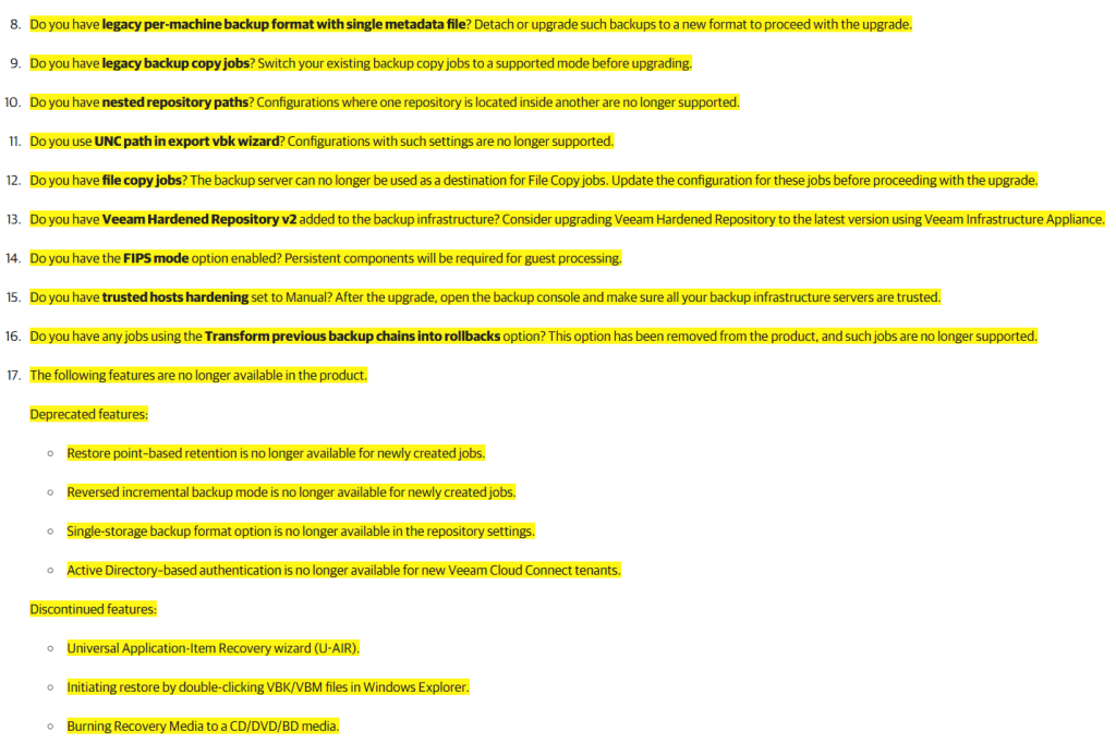 The upgrade checklist below sets out all of the requirements that should be in place prior to upgrading the VBR server. While the list may look long and tedious, it’s definately worth spending the time reading through it carefully to ensure the upgrade process runs as smoothly as possible.