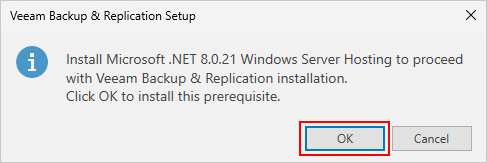 In my lab environment, the VBR server required a .NET upgrade before progressing.